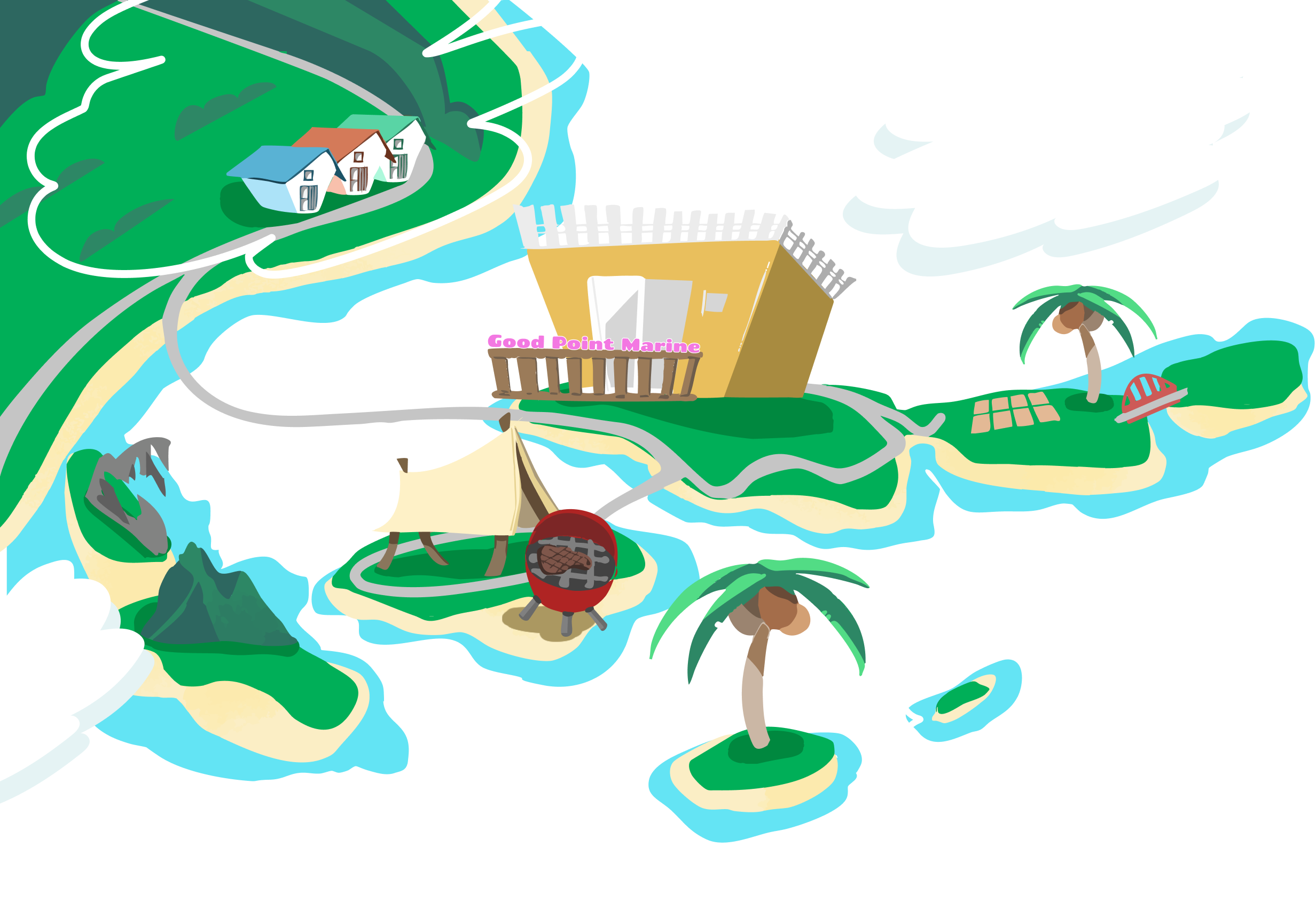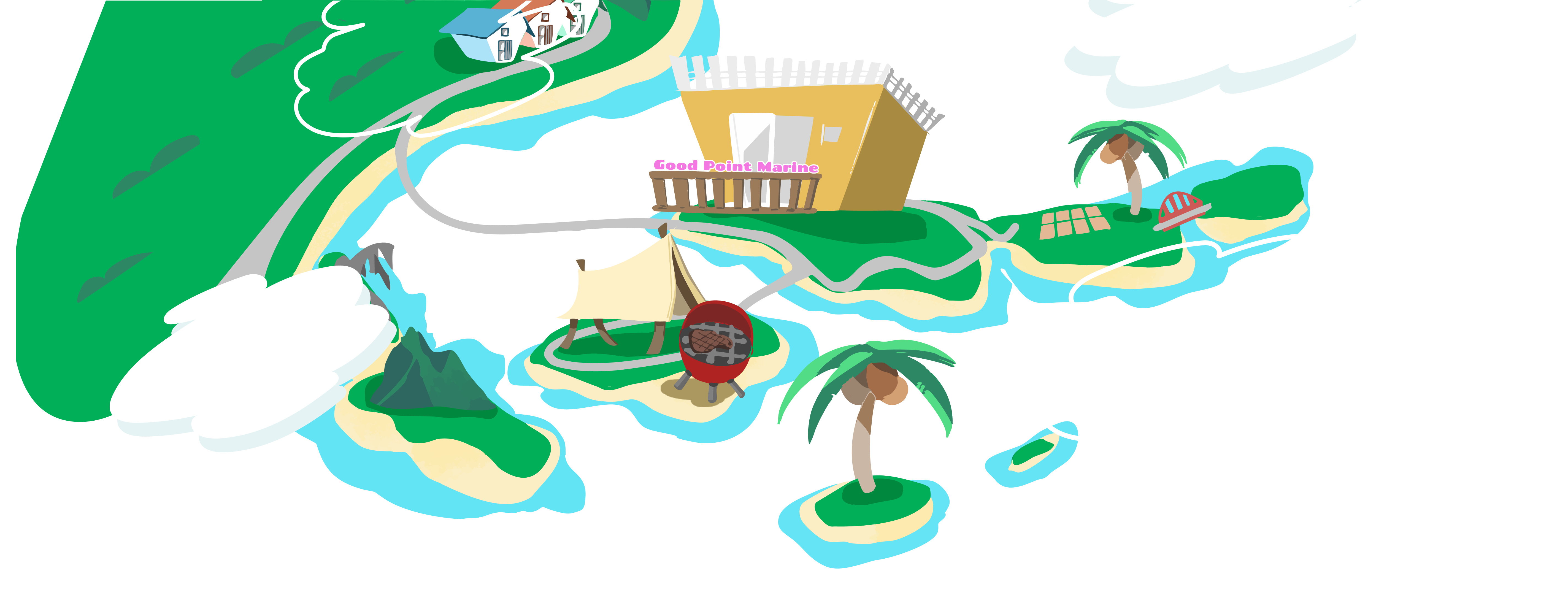 - 平安座 → 宮城島 → 伊計島 → 藪地島 → 津堅島 → 無人島 → 帰港