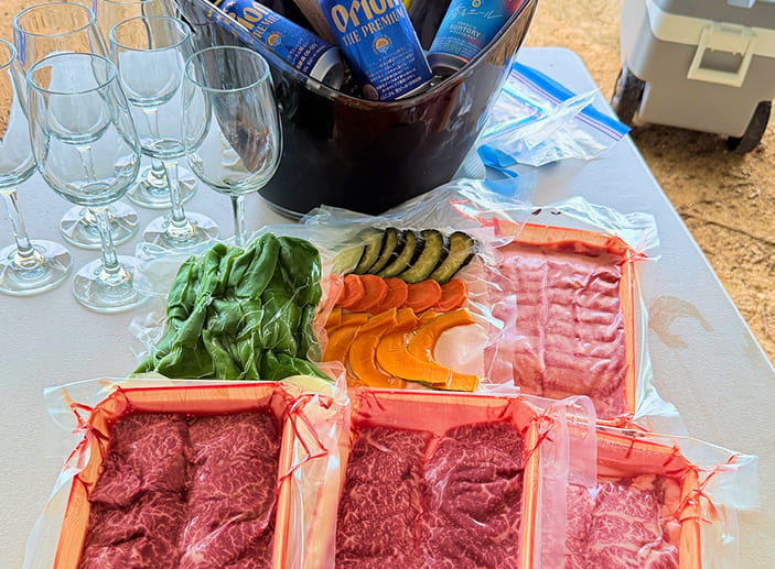 那覇の人気焼肉店「焼肉りゅうもん」と提携して、最高ランクの上質なお肉をビーチで贅沢に楽しめる!