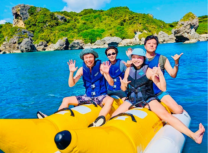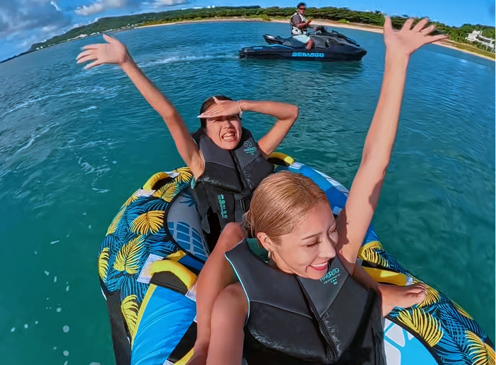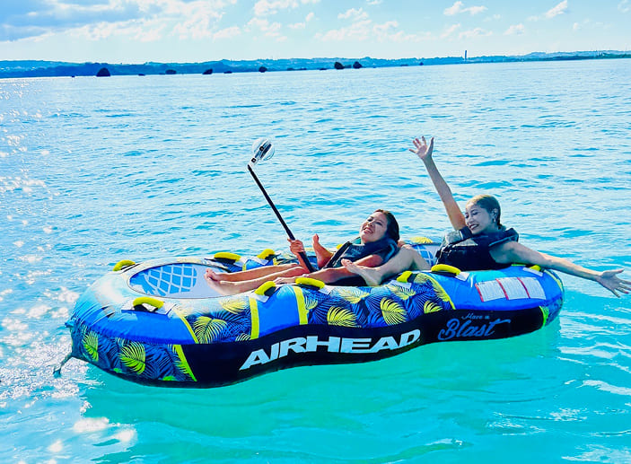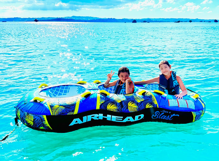 マーブルやバナナボートなど全8種類から選べるトーイングチューブで、笑い止まらないスリル体験!