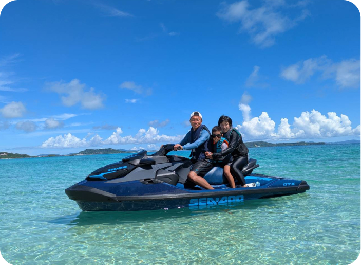 ※ガイドが運転するジェットスキーにご同乗頂き、ジェットスキーツアーをお楽しみ頂けます。